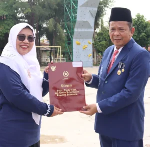 Penyerahn penghargaan tersebut disampaikan kepada yang bersangkutan pada apel HAB ke 78 Kemenag RI yang dilaksnakan di halaman Kampus I IAIN Metro pada Rabu pagi (03/01/2023. (ss_humas)