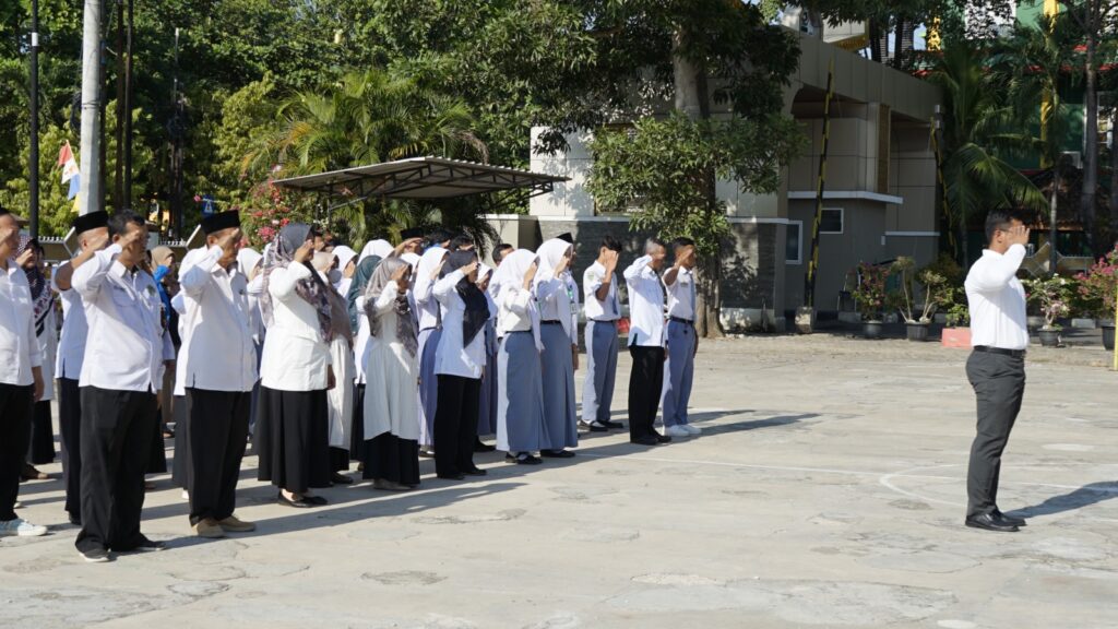 Tampak peserta upacara Senin pagi antusias mengikuti kegiatan apel rutin mingguan. (ss_humas)