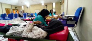 Tampak para pedonor dari kalangan mahasiswa dan pegawai duduk dalm antrian. Mereka adalah para pedonor tetap maupun yang baru pertama kali melakukan. “gak bisa bantu uang…bisanya bantu kasih darah”, celetuk salah satu pedonor menyampaikan motivasinya ikut donor darah. (Lk)