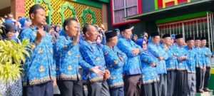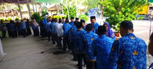Metro, metrouniv.ac.id – Keluarga besar IAIN Metro pada Rabu pagi melaksanakan Apel rutin setiap tanggal 17 (17/4/2024). Apel pagi yang merupakan hari kedua aktif kerja tersebut dilaksanakan di kampus I melibatkan seluruh dosen dan pegawai lainnya termasuk dosen pegawai yang biasa melaksanakan apel tersendiri di kampus II. Momen tersebut digunakan pula sebagai acara halal bil halal keluarga besar IAIN Metro.