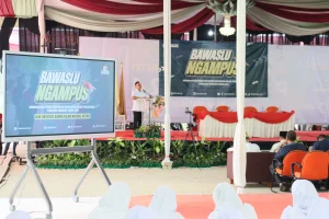 KAmpus II, metrouniv.ac.id – IAIN Metro mendapat kehormatan sebagai kampus pilihan di Provinsi Lampung utuk menggelar acara “Bawaslu Ngampus” yang diinisiasi oleh Badan Pengawas Pemilu (Bawaslu). Kegiatan yang bertema “Meningkatkan Peran Partisipasi Mahasiswa Dalam Pengawasan Pemilihan Serentak Tahun 2024” ini digelar di Gedung Kuliah Terpadu (GKT) Kampus II IAIN Metro pada Jum’at sore (30/08/2024). Acara tersebut diikuti oleh ratusan mahasiswa dan puluhan dosen IAIN Metro.