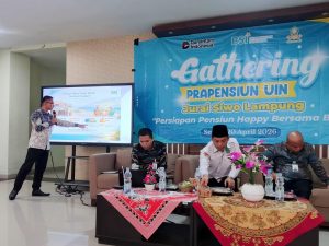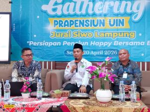 Lampung Timur, metrouniv.ac.id -Dalam upaya mendorong kesiapan finansial dan mental menjelang masa purna tugas, Bank Syariah Indonesia (BSI) Kantor Cabang Metro menggelar kegiatan Gathering Persiapan Pensiun Happy Bersama BSI di Aula Pertemuan Perpustakaan Bait Al Hikmah UIN Jurai Siwo Lampung, Senin (20/4/2026). Kegiatan ini dilaksanakan di lingkungan kampus dengan melibatkan para pegawai UIN Jurai Siwo Lampung sebagai peserta, sekaligus menjadi bagian dari implementasi kerja sama antara kedua institusi.
