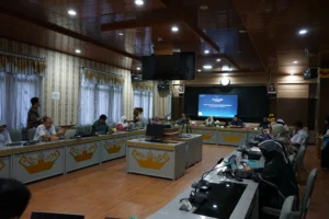 Pada kesempatan tersebut Rektor memperkanalkan seluruh unsur yang hadir pada ruang Syaifudin Zuhri mengikuti kegiatan entry meeting.
