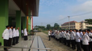 Batanghari Lampung Timur, metrouniv.ac.id – Gedung Kuliah Terpadu (GKT) IAIN Metro resmi difungsikan mulai hari ini. Apel pagi menjadi aktivitas perdana yang diadakan di gedung baru ini. Apel pagi rutin dilaksanakan setiap awal pekan sebagai upaya memberikan informasi kepada seluruh Aparatur Sipil Negara (ASN) dan pembinaan yang dilakukan oleh para pimpinan serta sebagai bukti disiplin sebagai seorang ASN.