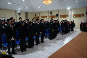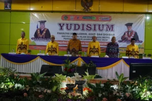 Metro, metrouniv.ac.id – Fakultas Ushuludin Adab dan Dakwah (FUAD) Institut Agama Islam Negeri (IAIN) Metro menggelar upacara yudisium untuk merayakan kelulusan sebanyak 87 mahasiswa pada hari ini, Rabu (06/03/2024). Acara berlangsung di Gedung Serba Guna (GSG) IAIN Metro dan dihadiri oleh para pejabat tinggi dan pimpinan di lingkungan kampus.