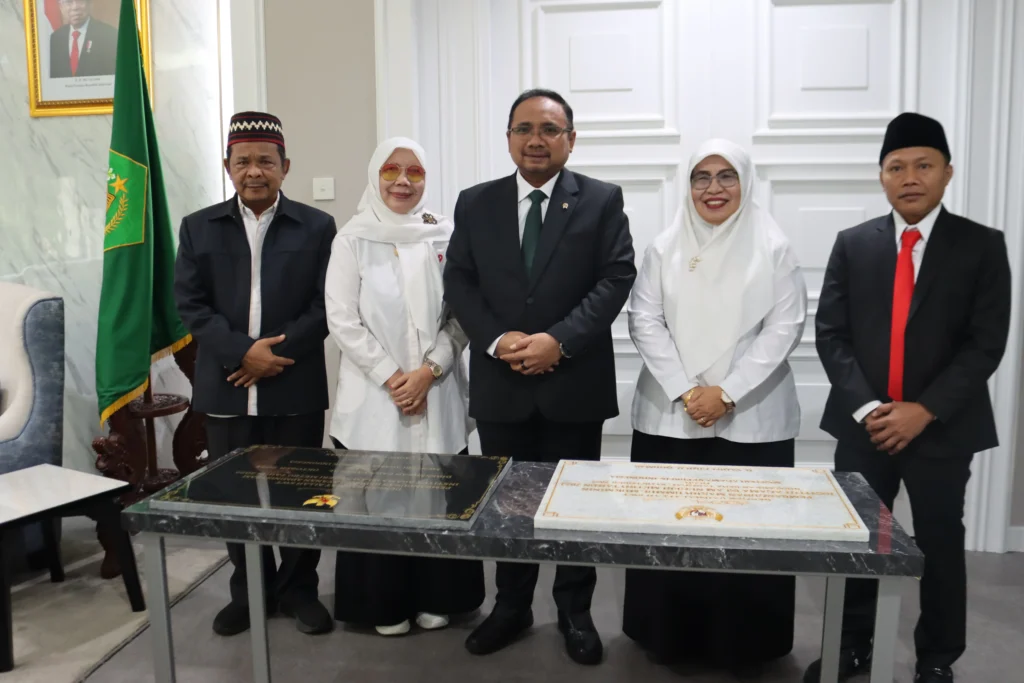 Jakarta, metrouniv.ac.id – Menteri Agama RI, Yaqut Cholil Qoumas (Gusmen), secara resmi menandatangani prasasti peresmian empat gedung baru sekaligus pada Senin, 14 Oktober 2024, di lantai 2 Gedung Kementerian Agama RI.