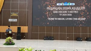 Sebanyak 484 siswa kelas XII SMK Negeri 3 Metro secara resmi dilepas oleh Kepala Sekolah, Erlian Eka Damayanti. Dalam sambutannya, ia menyampaikan rasa syukur atas kelulusan seluruh siswa tahun ini serta berharap para lulusan dapat mengimplementasikan keterampilan yang didapat di sekolah di dunia kerja. Selain itu Erlian juga menekankan kepada para lulusanya untuk melanjutkan pendidikan ke jenjang yang lebih tinggi, baik di Perguruan Tinggi Negeri (PTN) maupun Perguruan Tinggi Keagamaan Islam Negeri (PTKIN).
