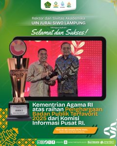 Rektor UIN Jurai Siwo Lampung, Prof. Ida Umami, menyampaikan apresiasinya atas capaian tersebut sekaligus menegaskan komitmennya untuk terus mendukung langkah Kementerian Agama dalam mewujudkan tata kelola pemerintahan yang transparan dan informatif.