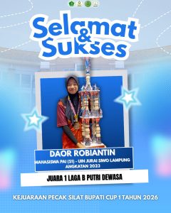 Di tengah persaingan yang ketat, tim Pencak Silat UIN Jurai Siwo Lampung yang berada di bawah UKM IMPOR (Ikatan Mahasiswa Pecinta Olah Raga) kembali membuktikan kualitasnya sebagai salah satu unit kegiatan mahasiswa yang konsisten menorehkan prestasi. Dalam kategori dewasa, mereka berhasil meraih Juara Umum III—sebuah capaian yang memperkuat reputasi UKM IMPOR sebagai langganan juara dalam berbagai kejuaraan pencak silat.