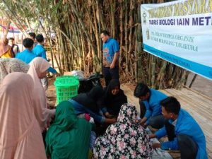 Metro, metrouniv.ac.id- Tim Dosen dan Mahasiswa Tadris Biologi IAIN Metro melatih para pedagang Payungi membuat inokulan keranjang Takakura, Minggu (22/9). Kegiatan ini merupakan program kerja