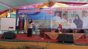 Metro, Metrouniv.ac.id-Pada hari ketiga PBAK IAIN Metro, Dr. Ida Umami, M.Pd, Kons mengenalkan Ormawa yang terdapat di IAIN Metro, Rabu (08/09) di halaman rektorat dan