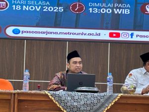 Lampung, metrouniv.ac.id– Pascasarjana UIN Jurai Siwo Lampung terus memperkuat komitmennya dalam meningkatkan kualitas riset dan publikasi ilmiah. Hal ini diwujudkan melalui penyelenggaraan kuliah umum bertema “Implementasi Teori Konstruksi Sosial dalam Riset” yang menghadirkan narasumber dari UIN Surakarta, Prof. Ilyya Muhsin, Dekan Fakultas Syariah UIN Surakarta. Kegiatan berlangsung di Aula Gedung Akademik Center (GAC), Kampus II UIN Jurai Siwo Lampung pada Selasa siang (18/11/2025).