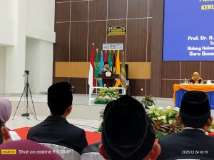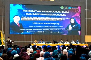 Hal itu disampaikan oleh Prof. Dr. H. Andi Salman Maggalatung, S.H., M.H., Staf Ahli Menteri Agama Bidang Hukum dan HAM, saat memberikan pembinaan Aparatur Sipil Negara (ASN) dan penguatan moderasi beragama di Gedung Academic Centre Kampus II UIN Jurai Siwo Lampung, pada Selasa, 24 Desember. Kegiatan ini dihadiri oleh ASN di lingkungan UIN Jurai Siwo Lampung serta ribuan guru yang tengah mengikuti prosesi pengukuhan Program Pendidikan Profesi Guru (PPG).