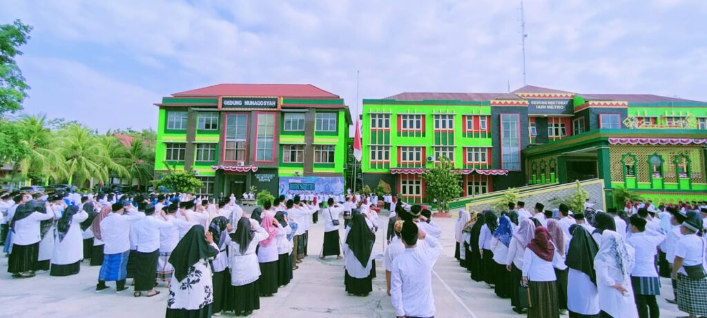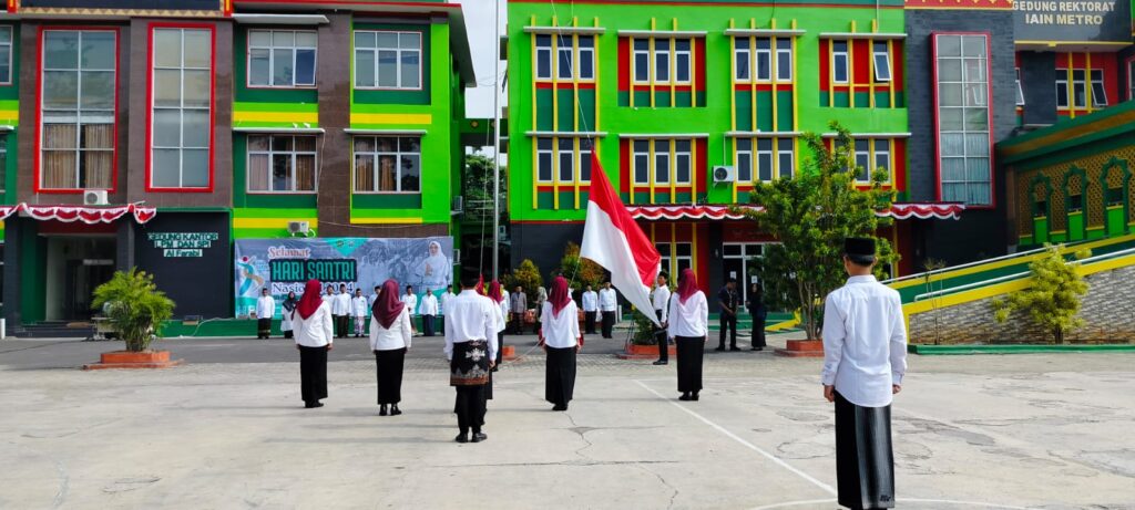 Metro, metrouniv.ac.id – 22 Oktober 2023, Peringatan Hari Santri di IAIN Metro berlangsung dengan meriah, salahsatunya dilaksanakan melalui upacara bendera yang diadakan di halaman Rektorat. Upacara ini dihadiri oleh civitas akademika, termasuk dosen, tenaga kependidikan, jajaran pimpinan rektorat dan dekanat, serta mahasiswa.
