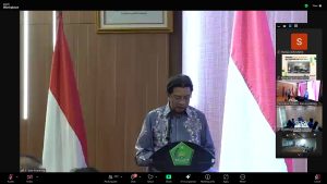 Metro, metrouniv.ac.id – Rektor IAIN Metro, Prof. Ida Umami, didampingi oleh Kepala Biro AUAK, Ahmad Supardi, menghadiri kegiatan Evaluasi dan Launching Buku Bank Soal Zona Integritas (ZI) yang digelar oleh Inspektorat Jenderal Kementerian Agama RI pada Kamis (17/04/2025). Kegiatan ini dilaksanakan secara hybrid melalui platform Zoom Meeting dan diikuti dari ruang operasional kantor Inspektorat Jenderal Kemenag RI. Sementara itu, peserta dari IAIN Metro mengikuti kegiatan secara online secara bersama-sama di Ruang Syaifudin Zuhri, lantai 2 Gedung Rektorat.