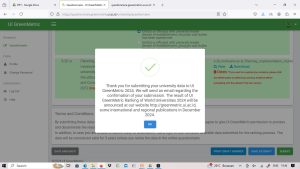 Kegiatan submit ini turut disaksikan oleh Nasrul Hakim, Ketua Tim Pengembangan Kampus Berkelanjutan dan Berwawasan Lingkungan IAIN Metro, yang juga merupakan Ketua Program Studi Tadris Biologi. Dalam kesempatan tersebut, Nasrul menyampaikan bahwa seluruh dokumen telah disusun secara cermat bersama tim sejak beberapa pekan terakhir. Ia berharap hasil pemeringkatan tahun ini dapat menunjukkan peningkatan yang signifikan dibandingkan tahun sebelumnya.