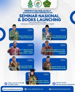 Semarang, metrouniv.ac.id — Akademisi dari berbagai perguruan tinggi di Indonesia berkumpul dalam Seminar Nasional yang digelar Asosiasi Dosen Pergerakan Indonesia (ADP) bersama UIN Walisongo Semarang, Sabtu (25/4). Forum ini mengangkat tema “Mencandera Masa Depan Kehidupan Beragama di Era Transformasi Digital”.