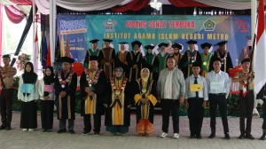 Upacara Sidang Senat diakhiri dengan penyerahan peserta PBAK oleh Ketua Senat kepada Rektor IAIN Metro, yang dilanjutkan dengan pemasangan tanda peserta PBAK oleh Rektor kepada perwakilan peserta, serta diikuti oleh seluruh peserta lainnya.