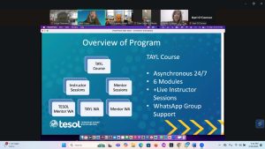 Program TAYL dirancang sebagai kursus daring mandiri berdurasi 60 jam, yang mencakup materi mengenai pengajaran kosa kata, struktur bahasa (grammar), strategi komunikasi, serta teknik penilaian pembelajaran siswa. Setiap kelompok belajar akan didampingi oleh dua mentor, dengan jumlah peserta antara 25 hingga 30 guru.