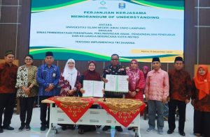 MoU tersebut ditandatangani oleh Rektor UIN Jurai Siwo Lampung, Prof. Dr. Ida Umami, M.Pd., Kons, dan Kepala Dinas PPPAPPKB Kota Metro, Subehi, S.STP., M.M. Penandatanganan turut disaksikan Wakil Rektor III UIN Jurai Siwo Lampung, Prof. Dr. Akla, M.Pd., serta Kepala Bidang Perlindungan Perempuan dan Anak Dinas PPPAPPKB Kota Metro, Diah Meirawati, S.Tr.Keb., SKM., M.Kes.