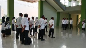 Apel pagi yang diselenggarakan di halaman Gedung Kuliah Terpadu ini selain dihadiri oleh jajaran Dekanat juga seluruh dosen dan pegawai yang ada di kampus 2 IAIN Metro. (Lk)