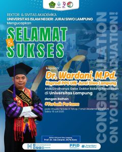 “Keberhasilan ini menjadi inspirasi sekaligus motivasi bagi para dosen dan tenaga pendidik di UIN Jurai Siwo Lampung untuk terus mengembangkan diri, baik dalam bidang akademik maupun profesional. Pencapaian Dr. Wardani membuktikan bahwa semangat untuk terus belajar dan berkarya akan selalu menghasilkan prestasi yang membanggakan, tidak hanya bagi pribadi, tetapi juga institusi,” terangnya.