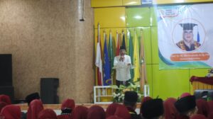 Metro, metrouniv.ac.id – Dr. Mat Jalil, M.Hum., dekan dari Fakultas Ekonomi dan Bisnis Islam (FEBI) IAIN Metro, mengajak seluruh mahasiswa FEBI yang hari ini (22/7/2024) sedang melaksanakan yudisium untuk mengambil peran aktif dalam meningkatkan kondisi sosial keagamaan serta ekonomi masyarakat. Beliau menekankan pentingnya sikap yang berani untuk menyuarakan kebenaran demi perubahan yang lebih baik ke depannya.