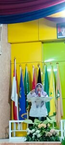 Sebelum mengakhiri sambutannya rektor tak lupa menyampaikan sebuah pantun yang dijawab semangat oleh hadirin. (Lk)